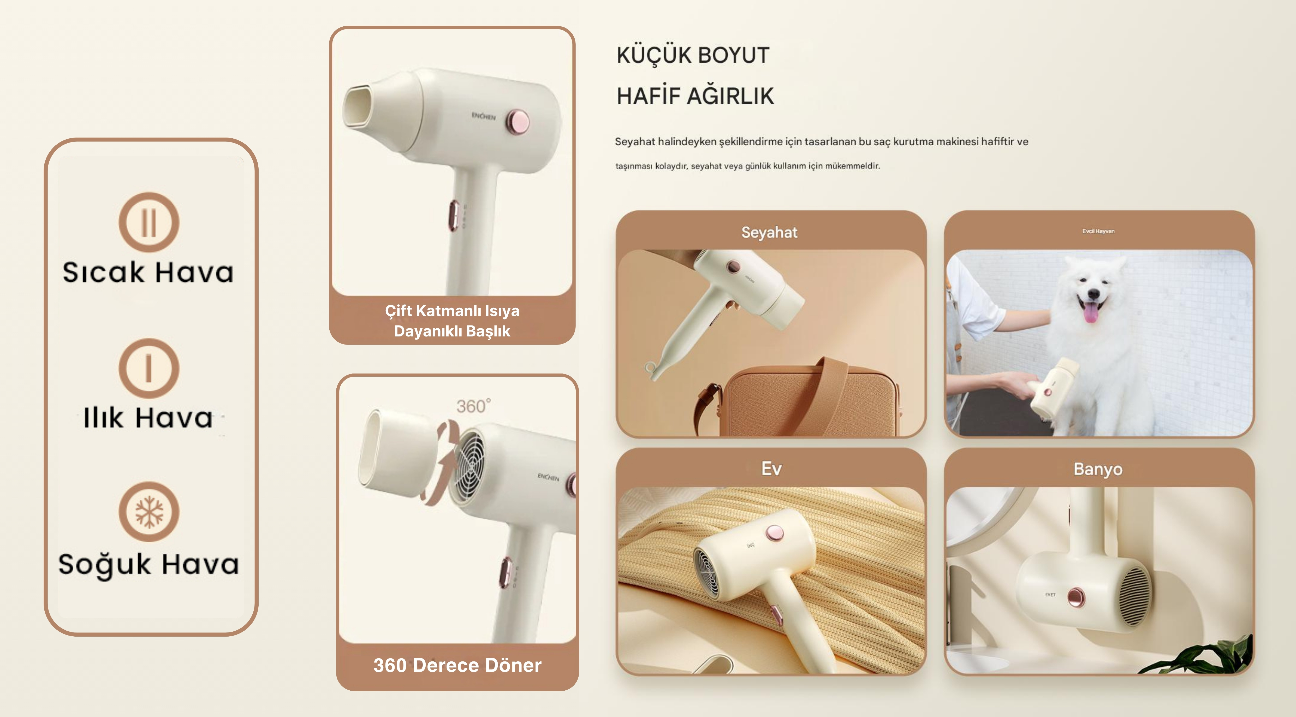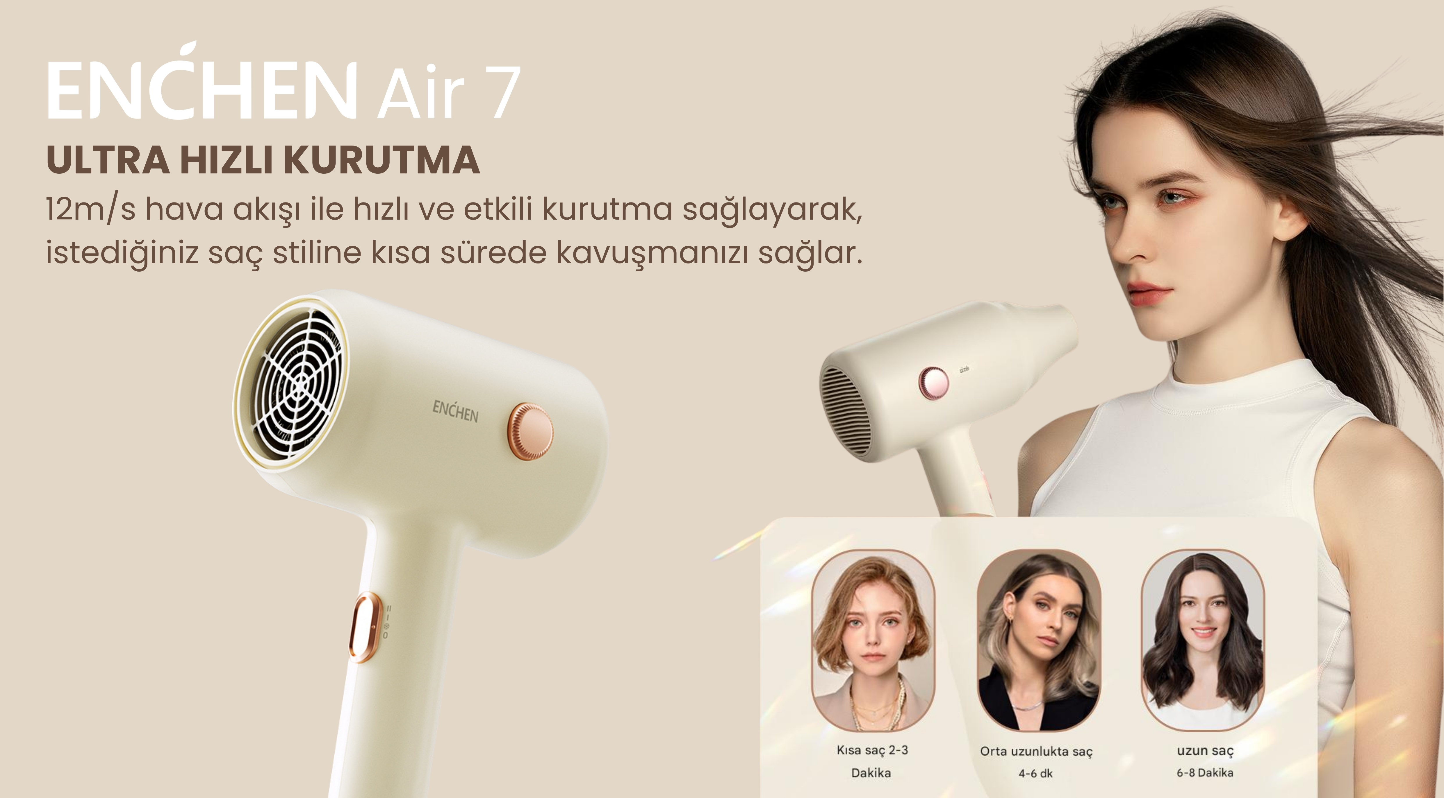 Enchen Air 7 1800 Watt Negatif İyonik Teknoloji 3 Sıcaklık Modlu Saç Kurutma Makinesi