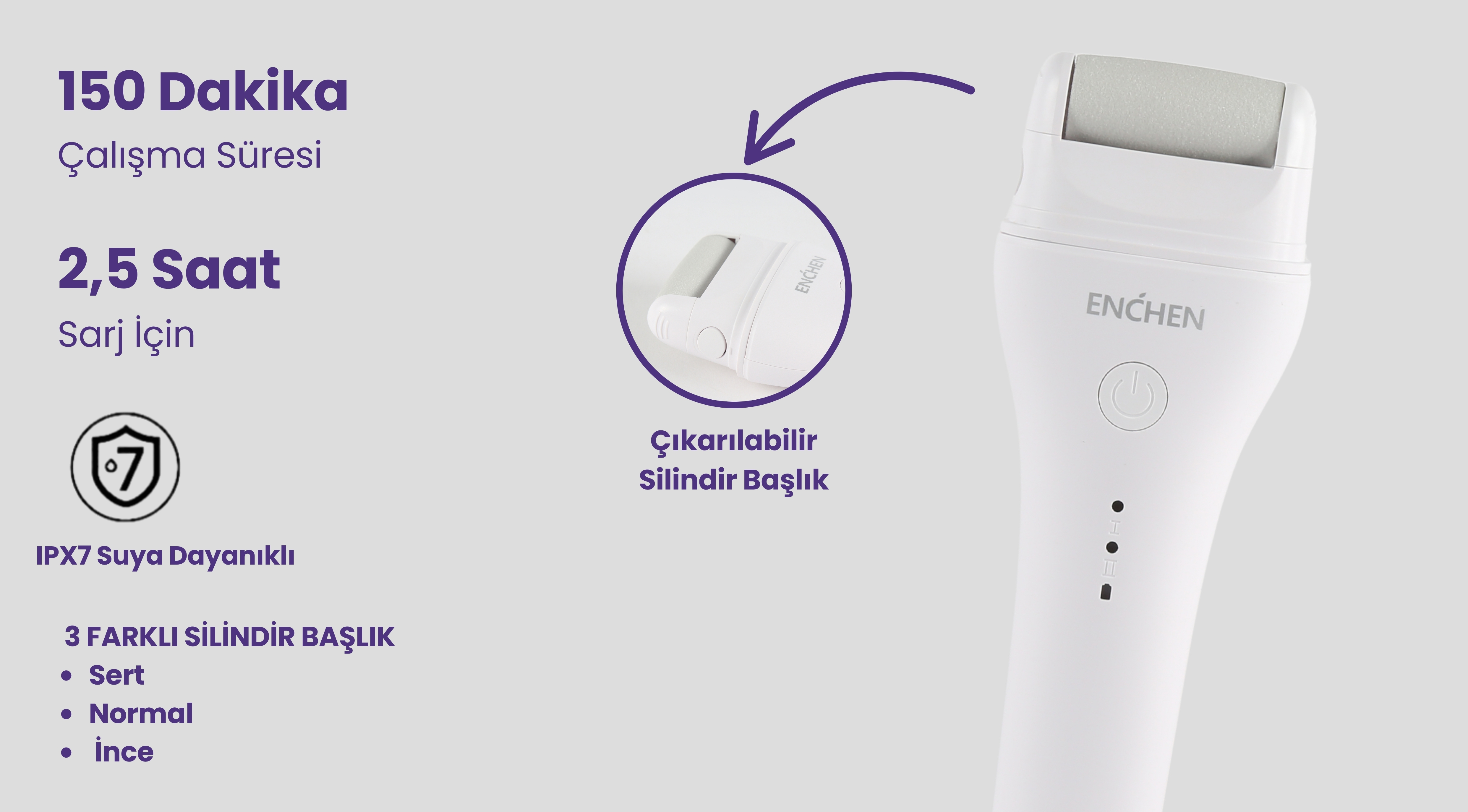 Rock 2 Kademeli 3 Silindir Başlıklı Suya Dayanıklı Şarjlı Nasır Törpü Ayak Bakım Cihazı